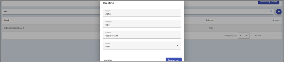 L’ajout, l’édition et la suppression des utilisateurs n'est disponible que pour les utilisateurs ayant le rôle admin.